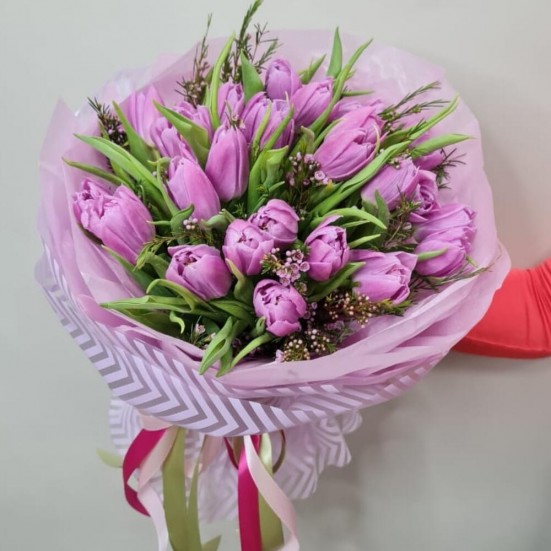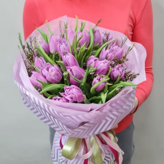 Букет «25 фиолетовых пионовидных тюльпанов» в Кемерово