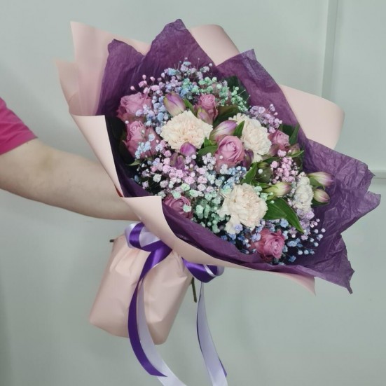 Заказывал данный букетик сестре на день рождения. Очень хорошо выполнен и цветы долго жили.