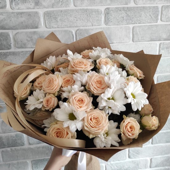 Букет «Белые хризантемы с розами» в Кемерово