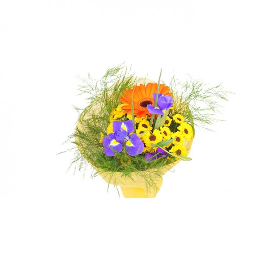 Букет из ирисов и эустомы с герберой в Кемерово