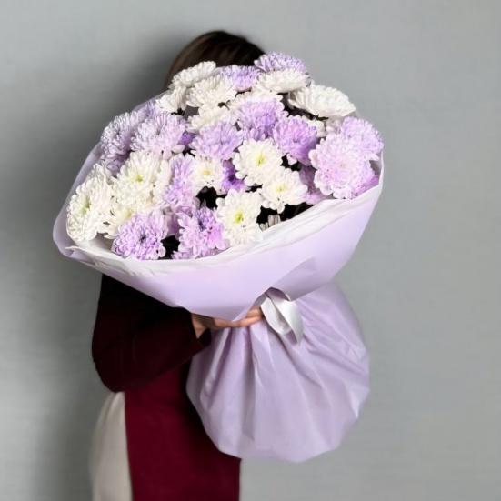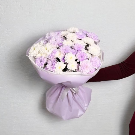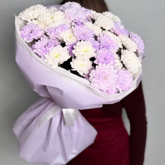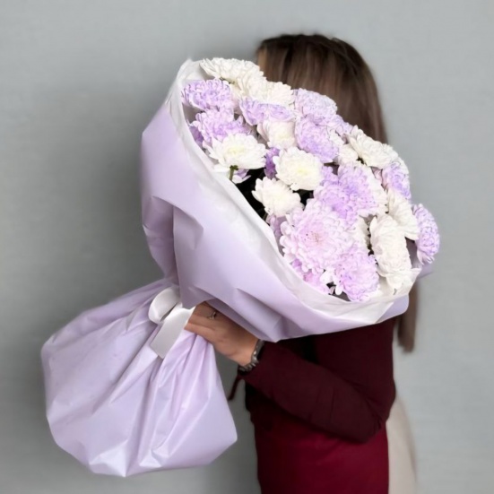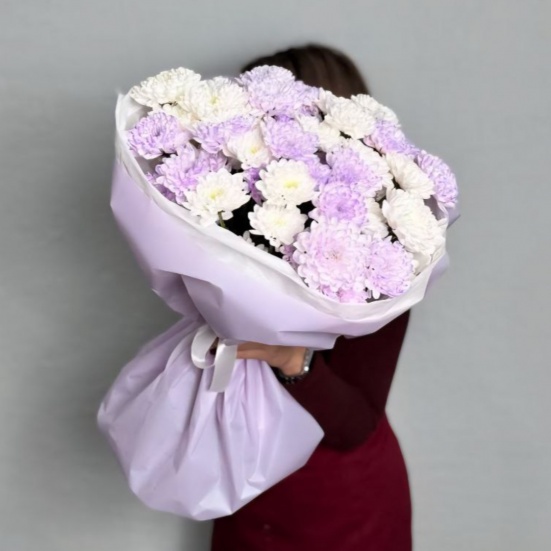 Букет из 9 фиолетовых и белых хризантем в Кемерово