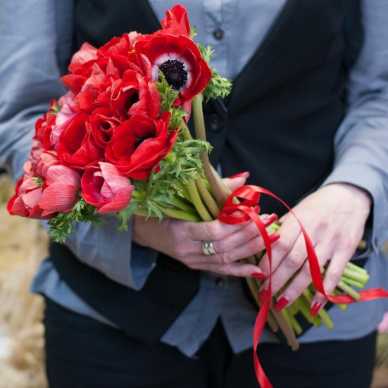 Букет с красными анемонами