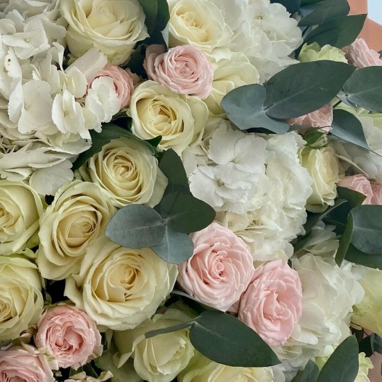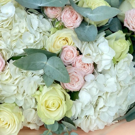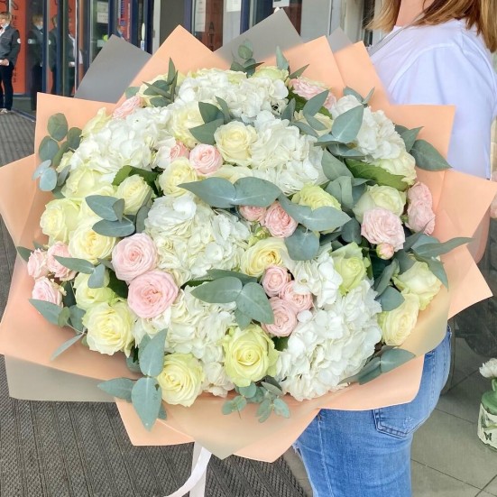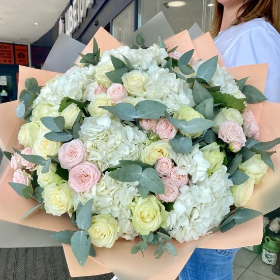 Букет «Пионовидные розы, гортензия» в Кемерово