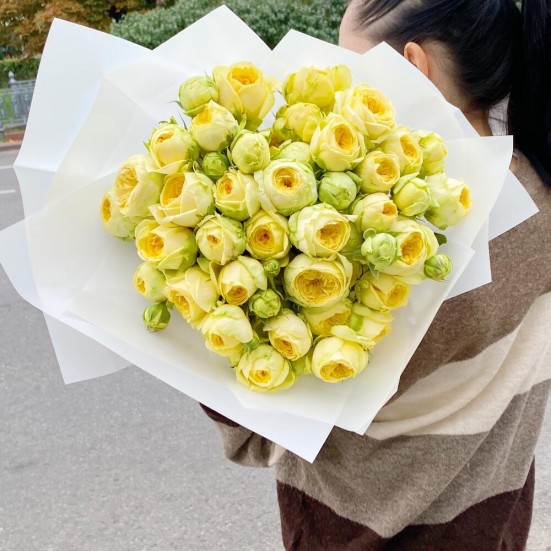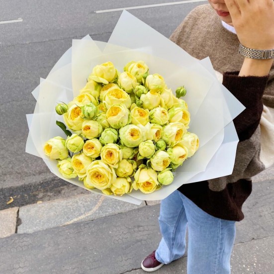 Пионовидные кустовые розы желтые 15 шт.