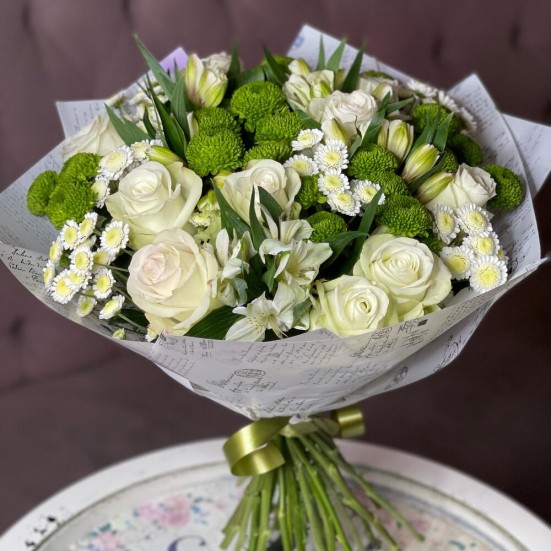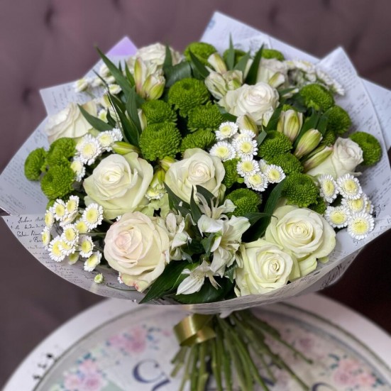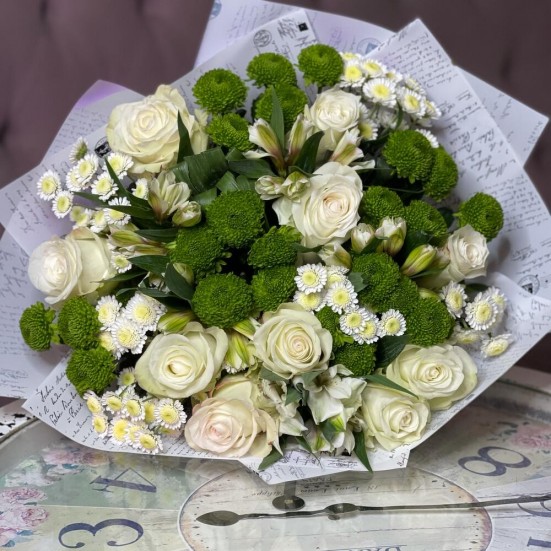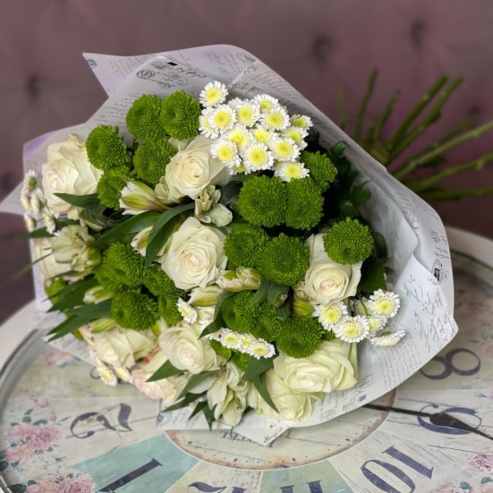 Букет «Розы и зеленые хризантемы» в Кемерово