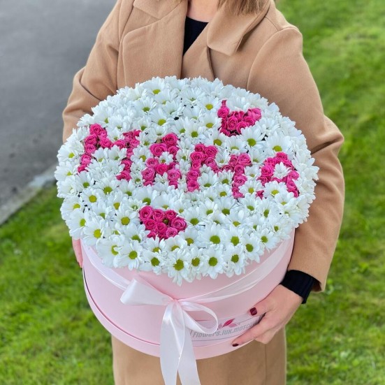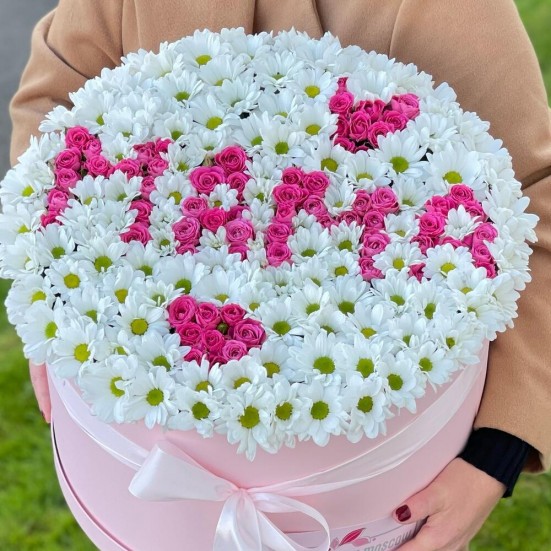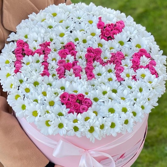 Хризантема ромашковая и роза в коробке Маме в Кемерово