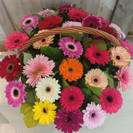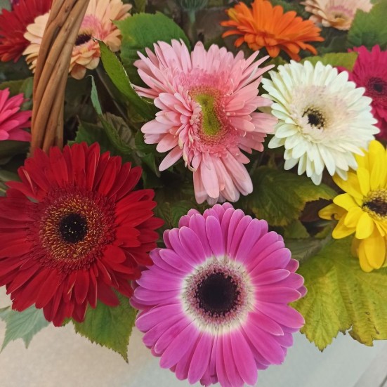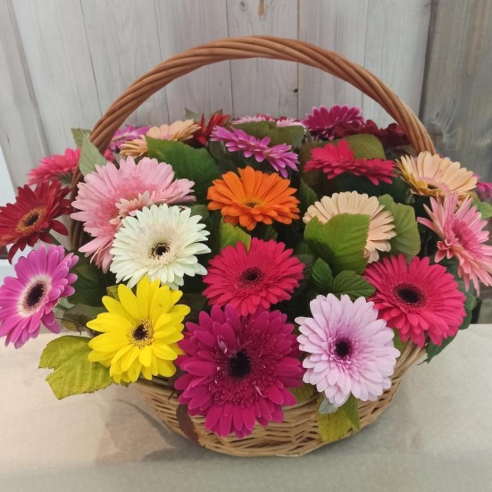 Заказывали букет на юбилей мамы. Пришло в короткий срок. Цветочки очень пышные, как на фотографии. Один розочка, к сожалению, завяла, но это было незаметно. Хорошая цена за такую работу.