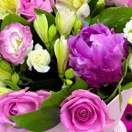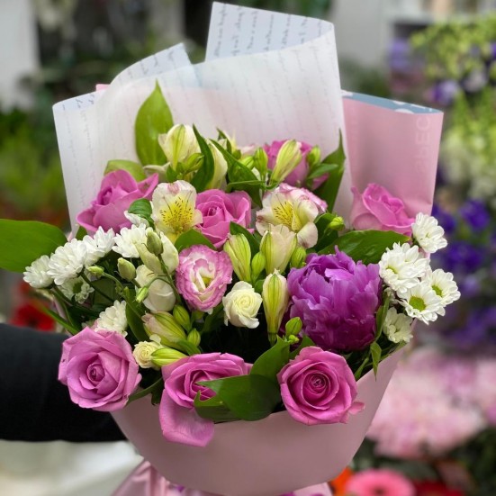 Заказывали букет на юбилей мамы. Пришло в короткий срок. Цветочки очень пышные, как на фотографии. Один розочка, к сожалению, завяла, но это было незаметно. Хорошая цена за такую работу.